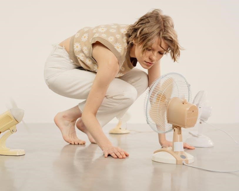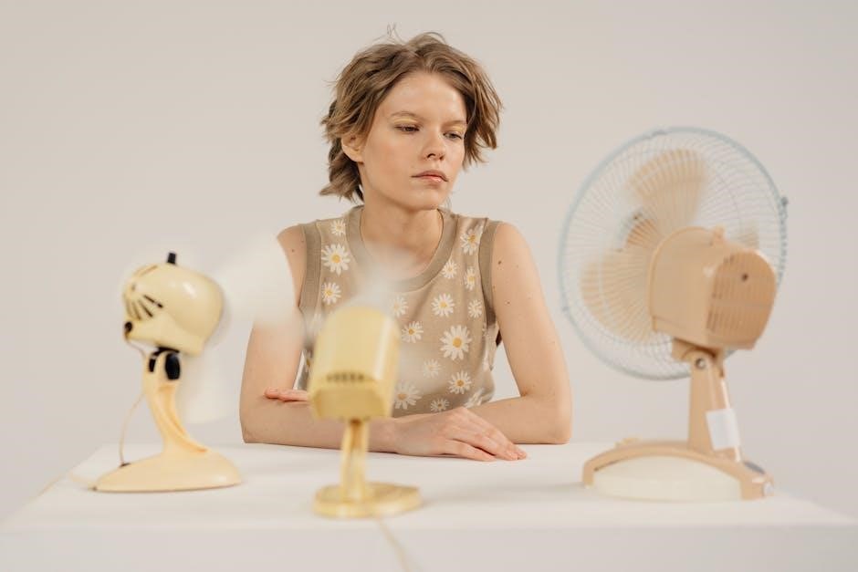 To replace blades, ensure the fan is powered off. Carefully remove the existing blades by loosening the screws connecting them to the blade holders. When sourcing replacements, verify compatibility with your fan model – incorrect blades can cause imbalance. Securely attach the new blades to the holders, tightening screws firmly. Always balance the blades post-replacement to prevent wobbling and ensure smooth, quiet operation.